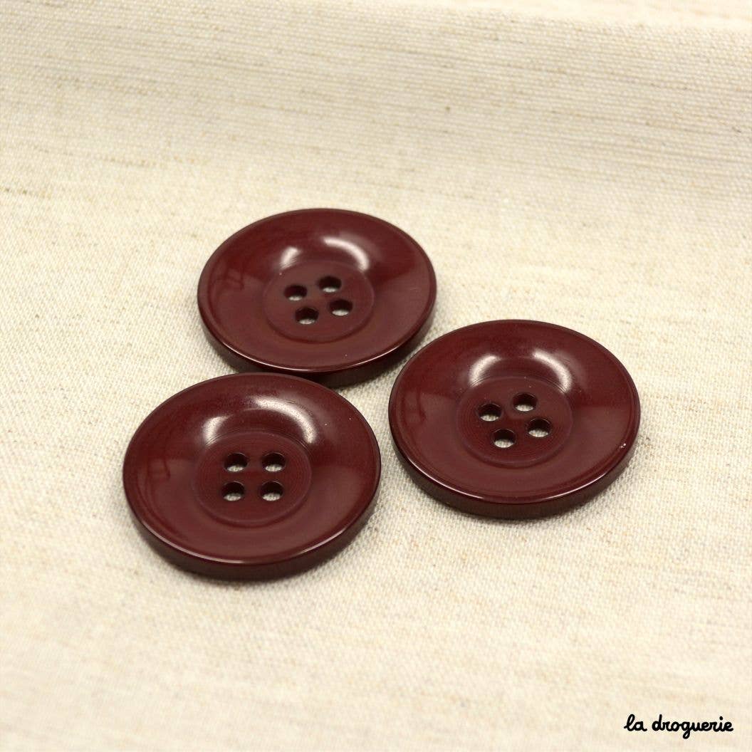Large round button with 4 centered holes and the round is curved. They can be put on both sides for a different effect. As its name suggests, it is a classic and timeless button that will go on all your models, both knitting and sewing. Polyester button Size: 23 mm in diameter find the Grand Classic 4 hole.