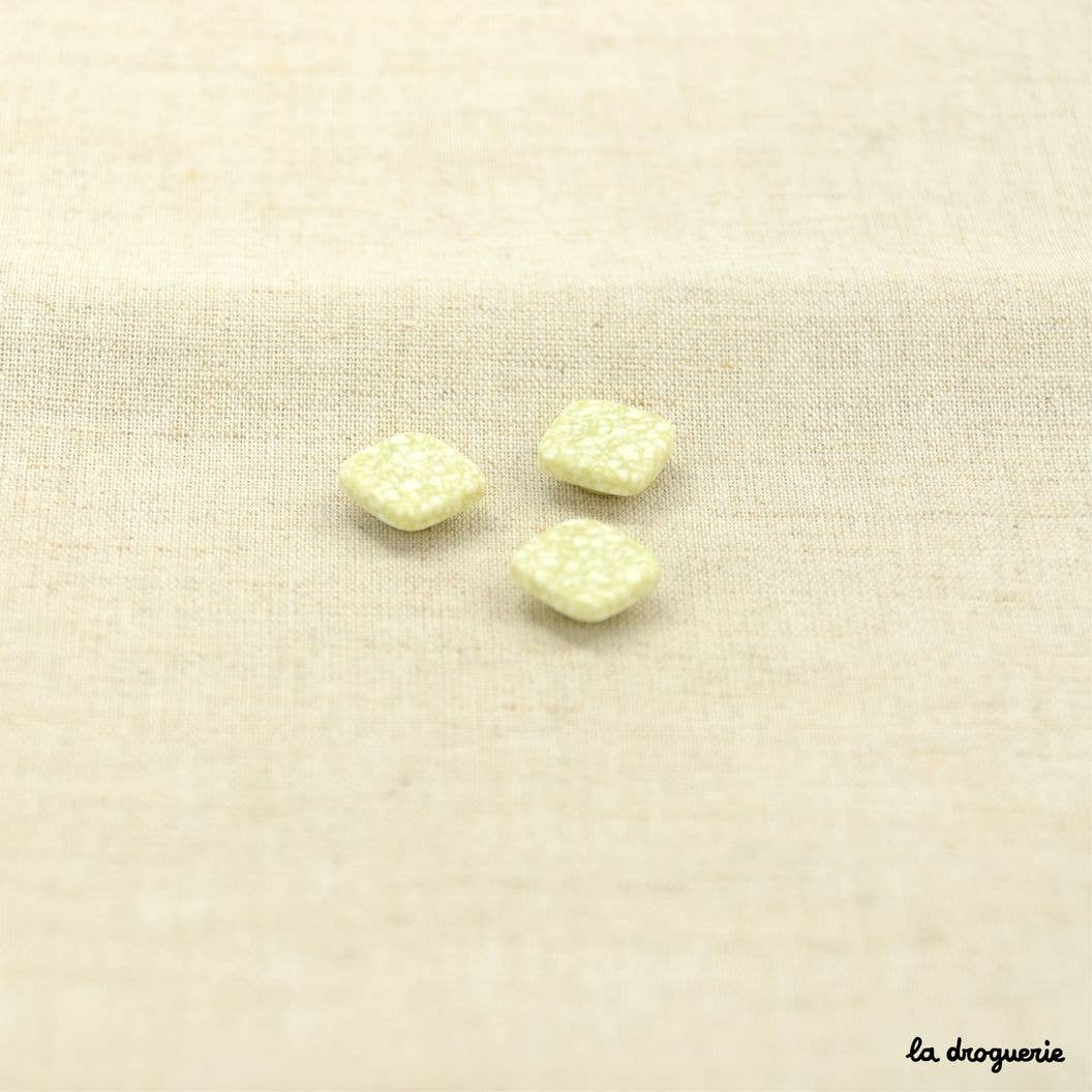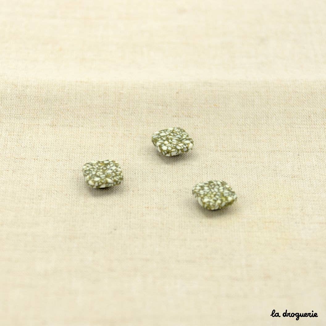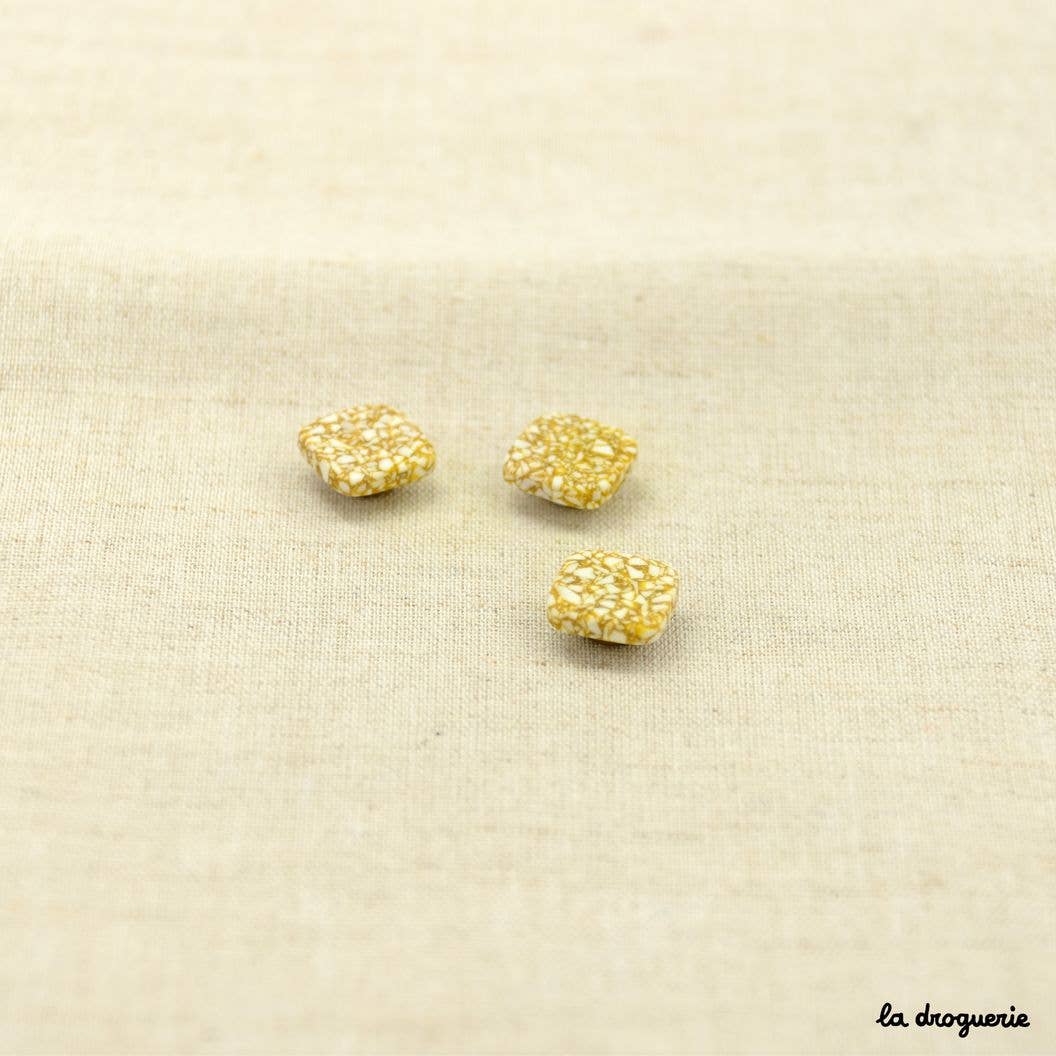Two-tone Terrazzo-style square foot button. Kind of a small mosaic. Not very big, it is perfect for thin blouses or vests. A bit retro, this original button will also be perfect for accessorizing a vintage piece.