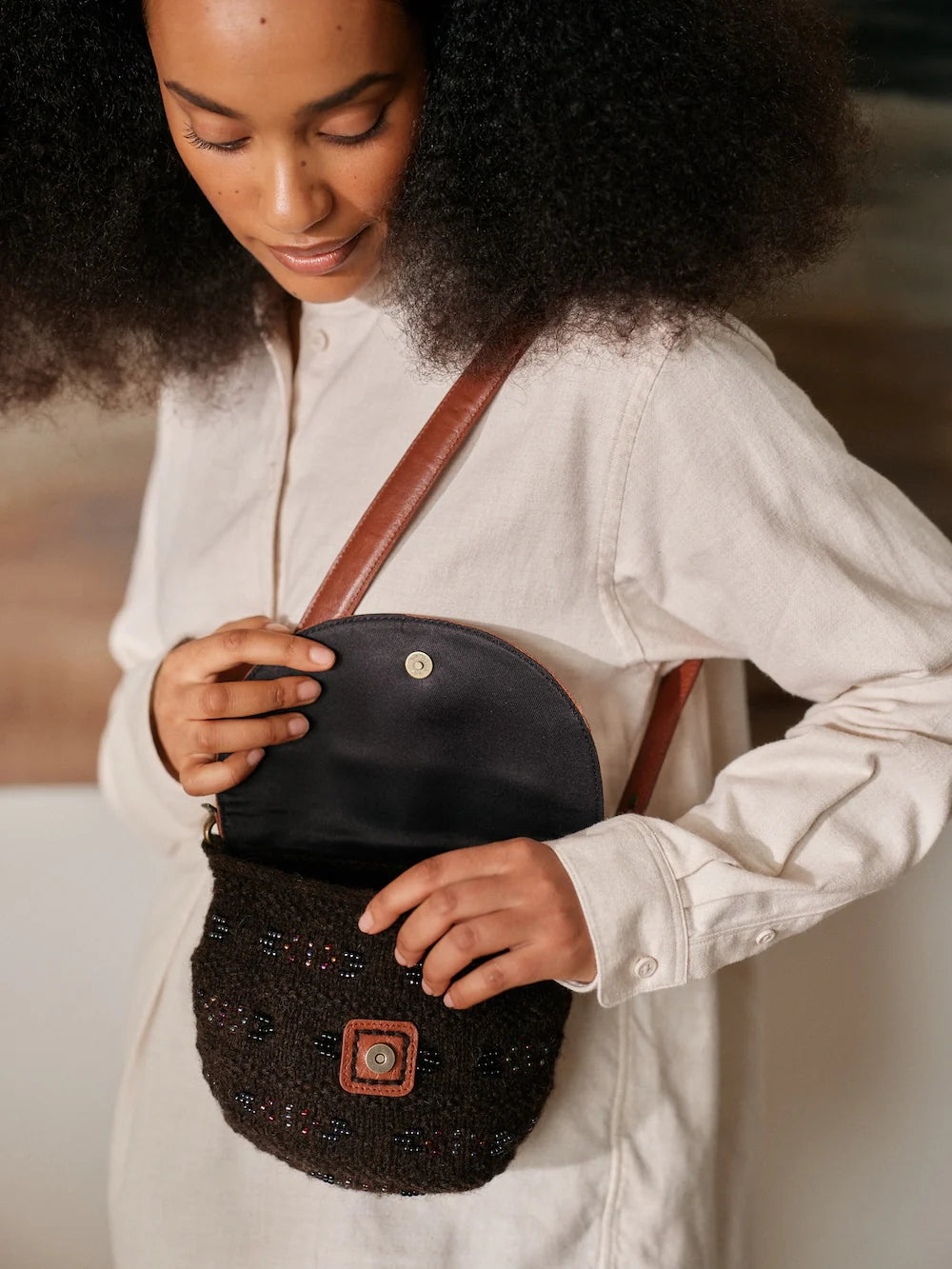 17 patterns: 4 bags, 2 sweaters, 2 shawls, 2 hats, 2 scarves, 1 cardigan, 1 vest, 1 poncho, 1 cowl and 1 pair of mittens.