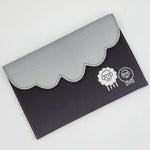 - The double point needles are packaged in a grey fabric case with scalloped edge.