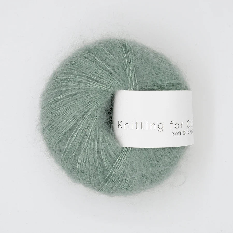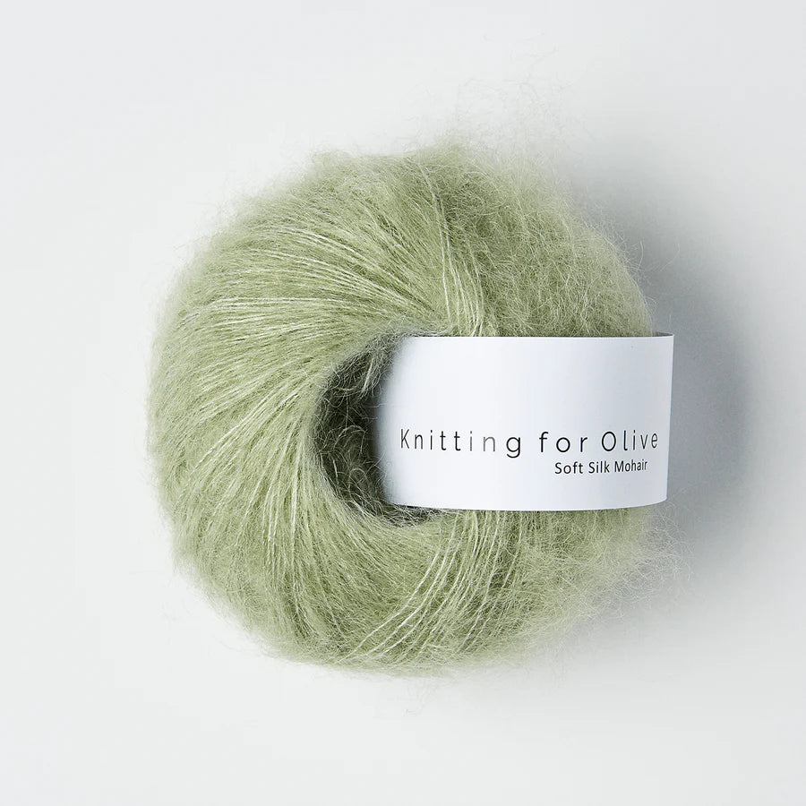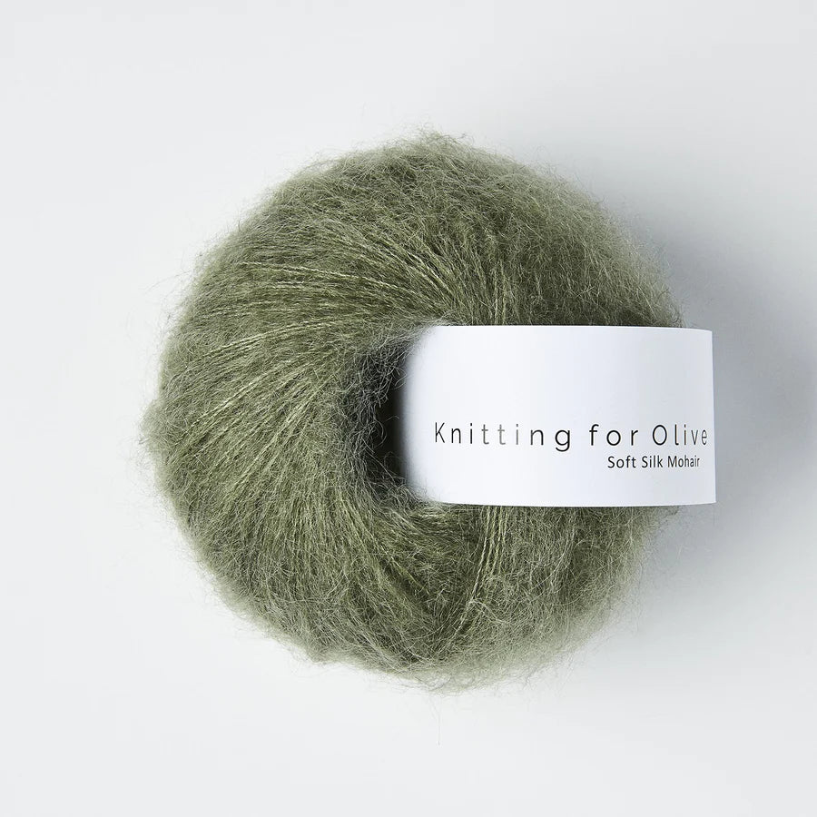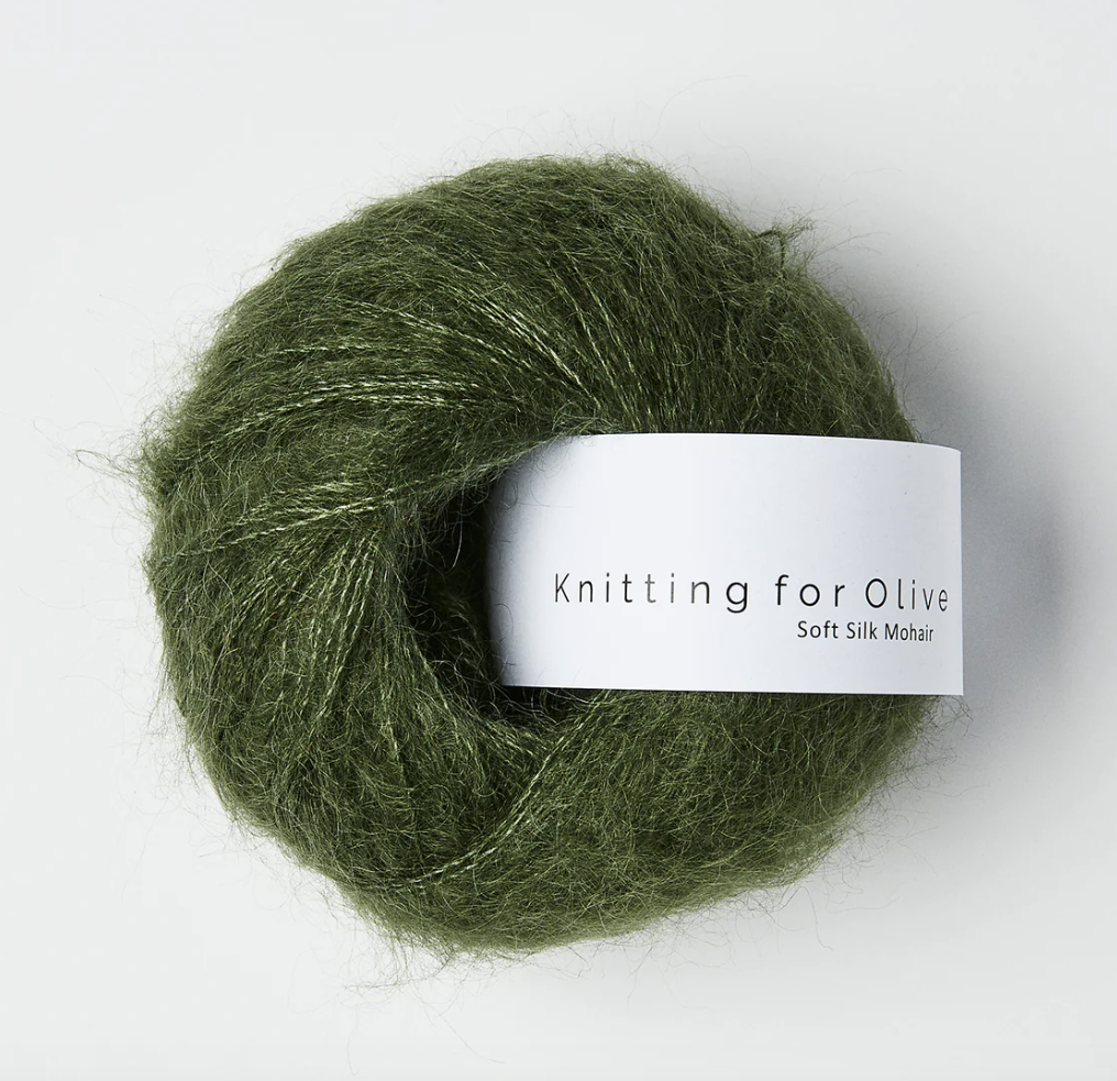 Knitting for Olive Soft Silk Mohair can be used together with a strand from a companion yarn.