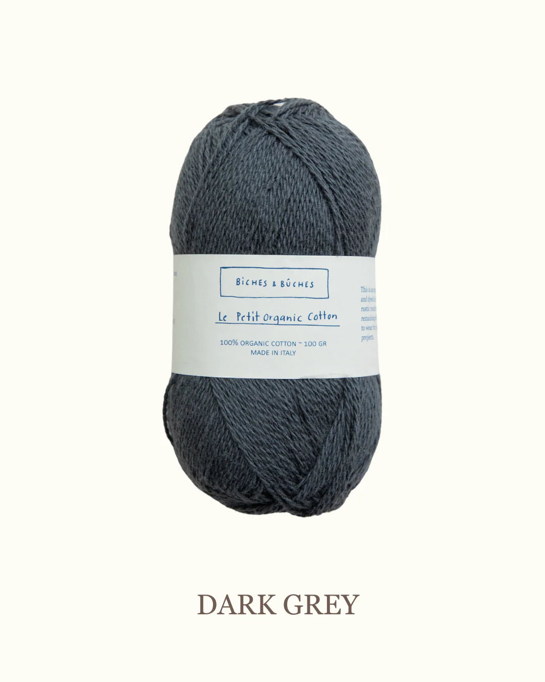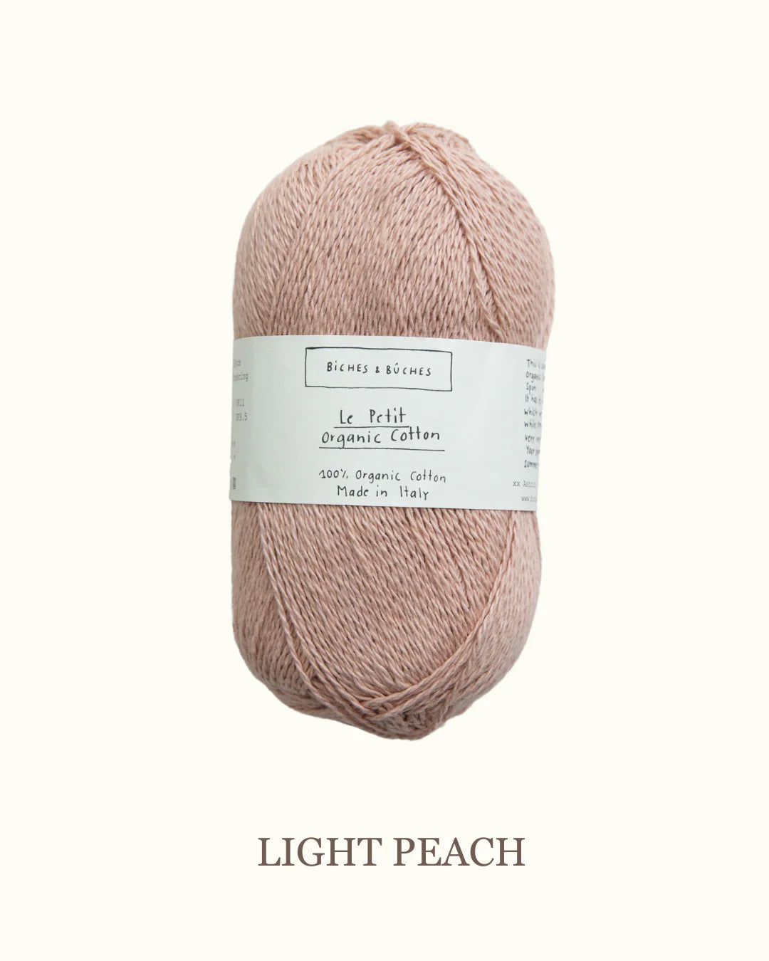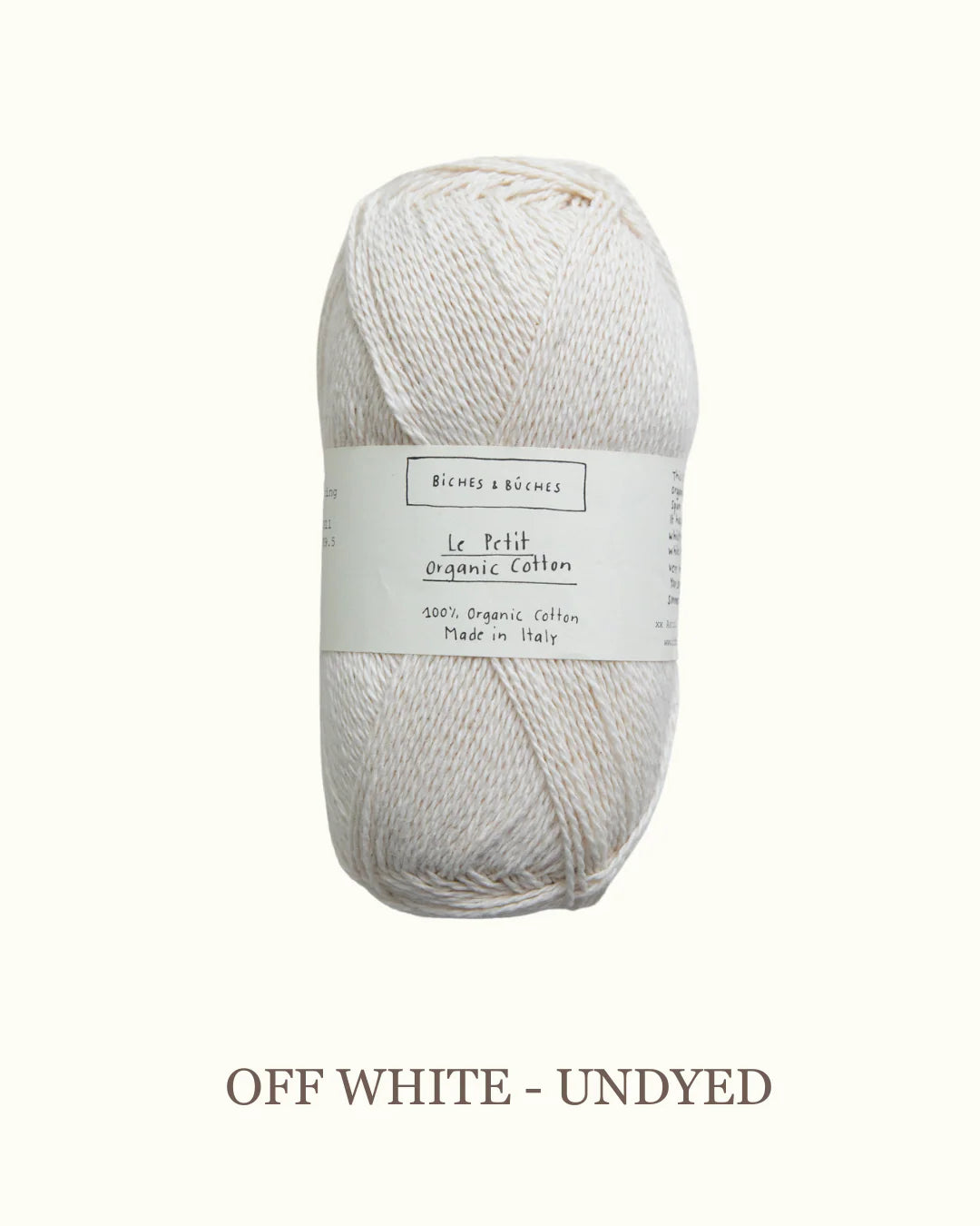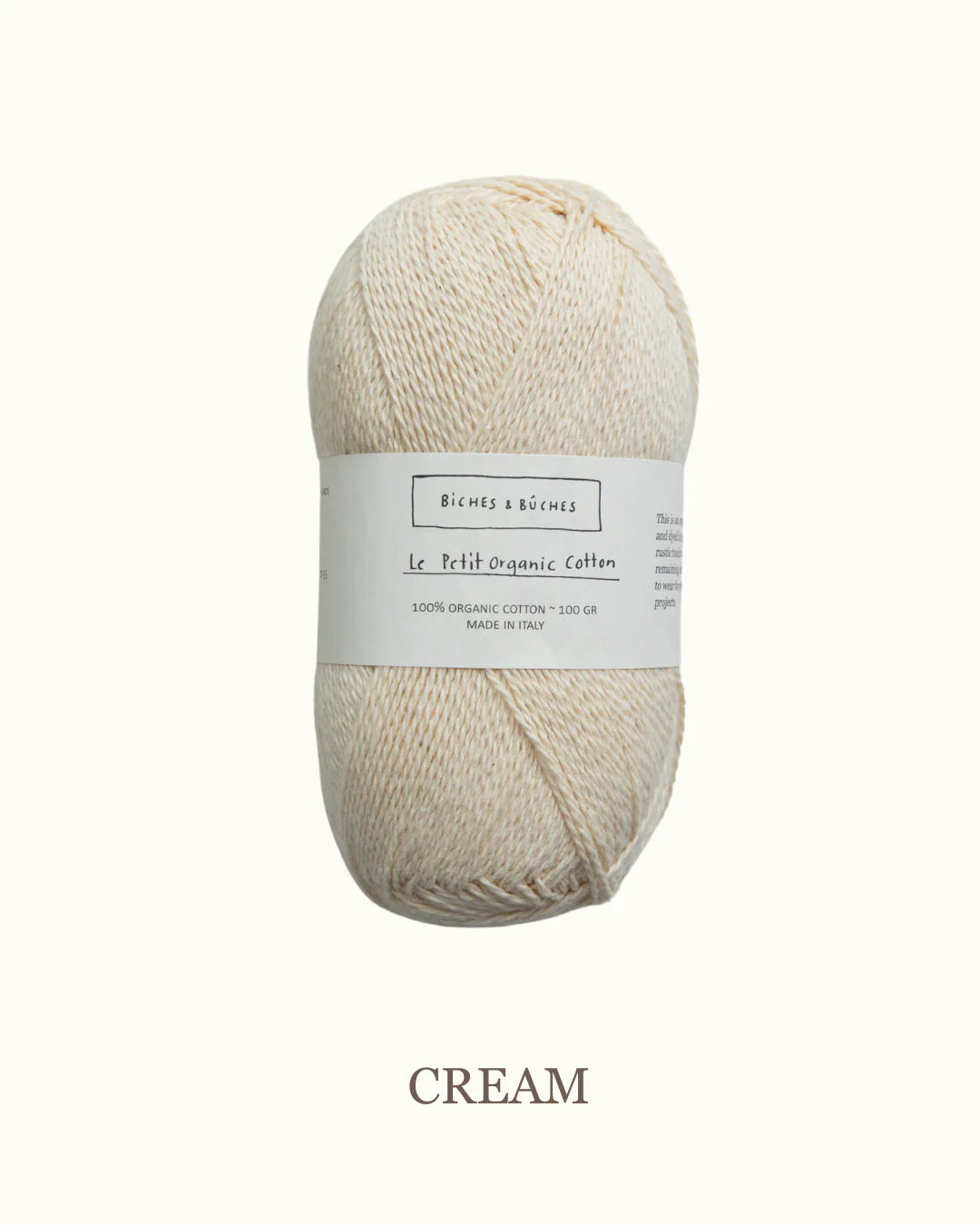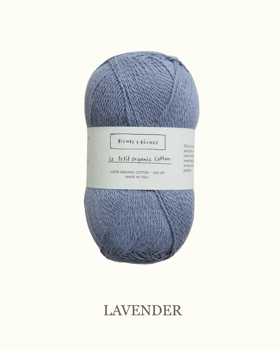 Le Petit Organic Cotton is a fingering weight and is a pure cotton yarn that has a beautiful shine and a rustic feeling.