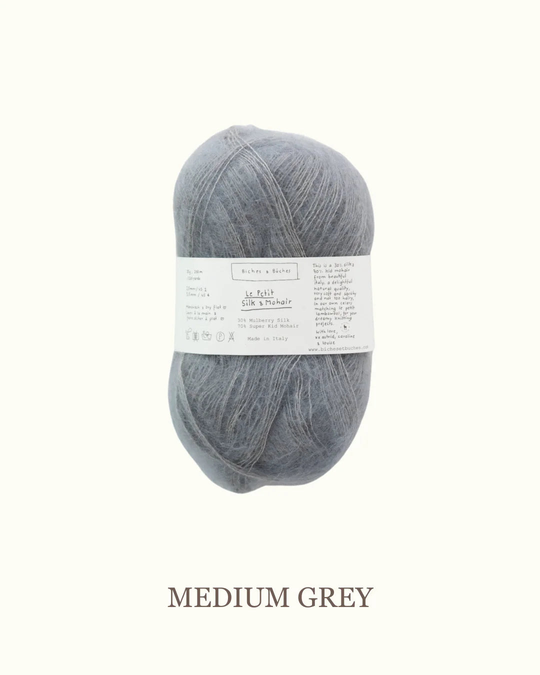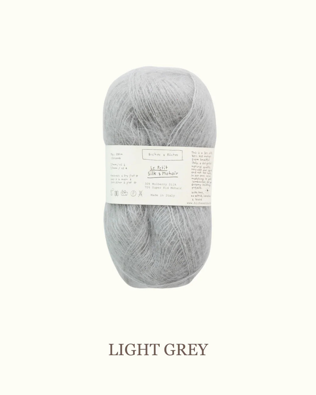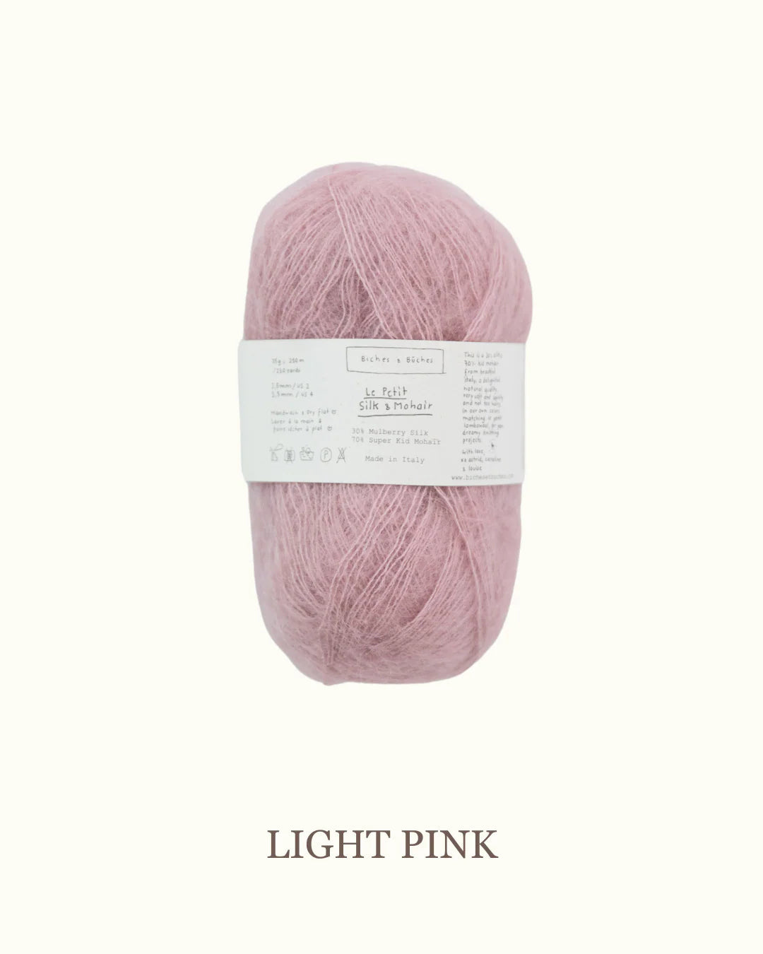 Biches & Bûches Le Petit Silk & Mohair is the finest blend of 30% mulberry silk and 70% super kid mohair from Italy.
