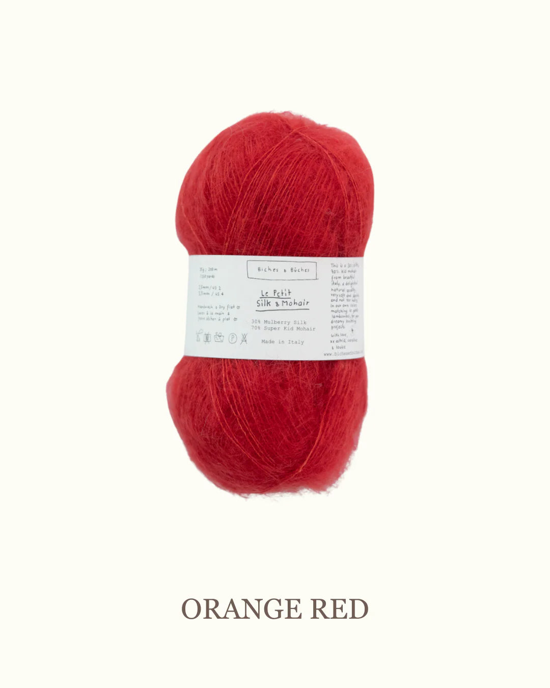 We have developed the colors of Le Petit Silk & Mohair in accordance with the colors of Le Petit & Le Lambswool so you can knit with a strand of each.
