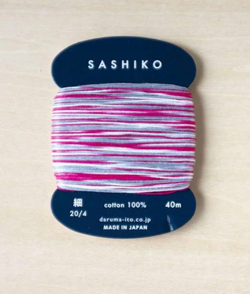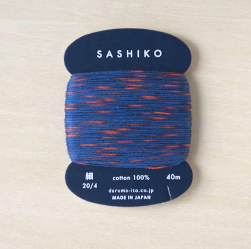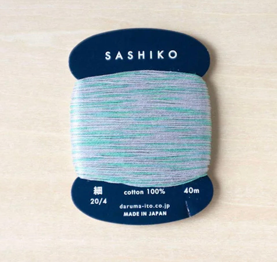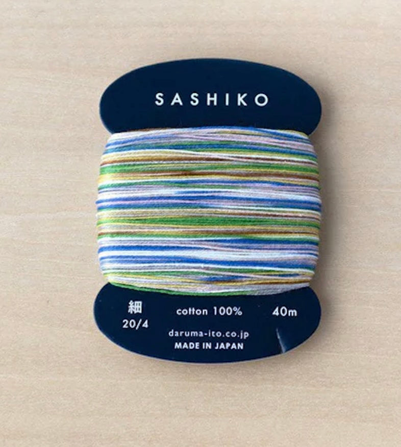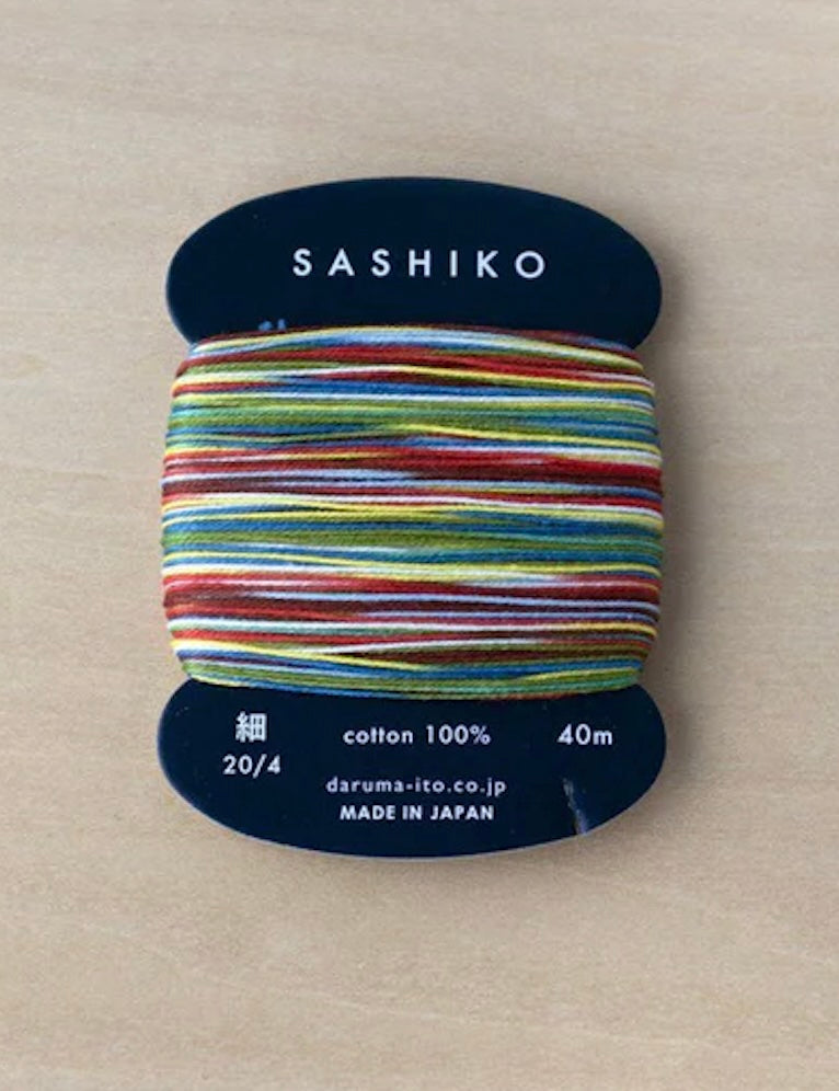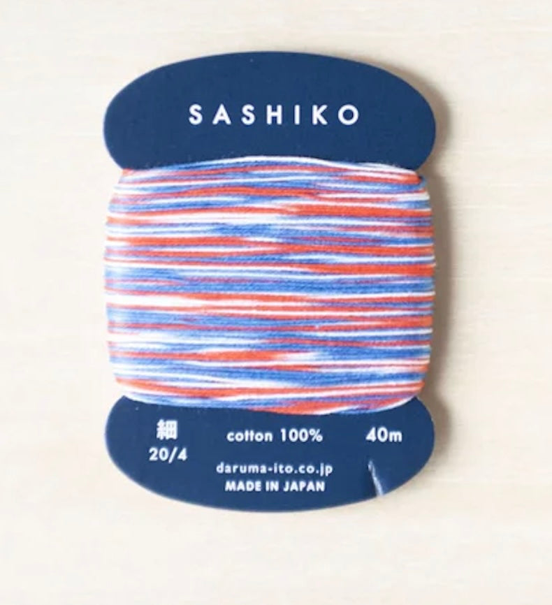 A 4-ply essential Sashiko Thread, now available in variegated colorways. Suitable for stitching elaborate and larger patterns. The thread is wrapped on a card so you can easily cut your desired length and neatly store it.