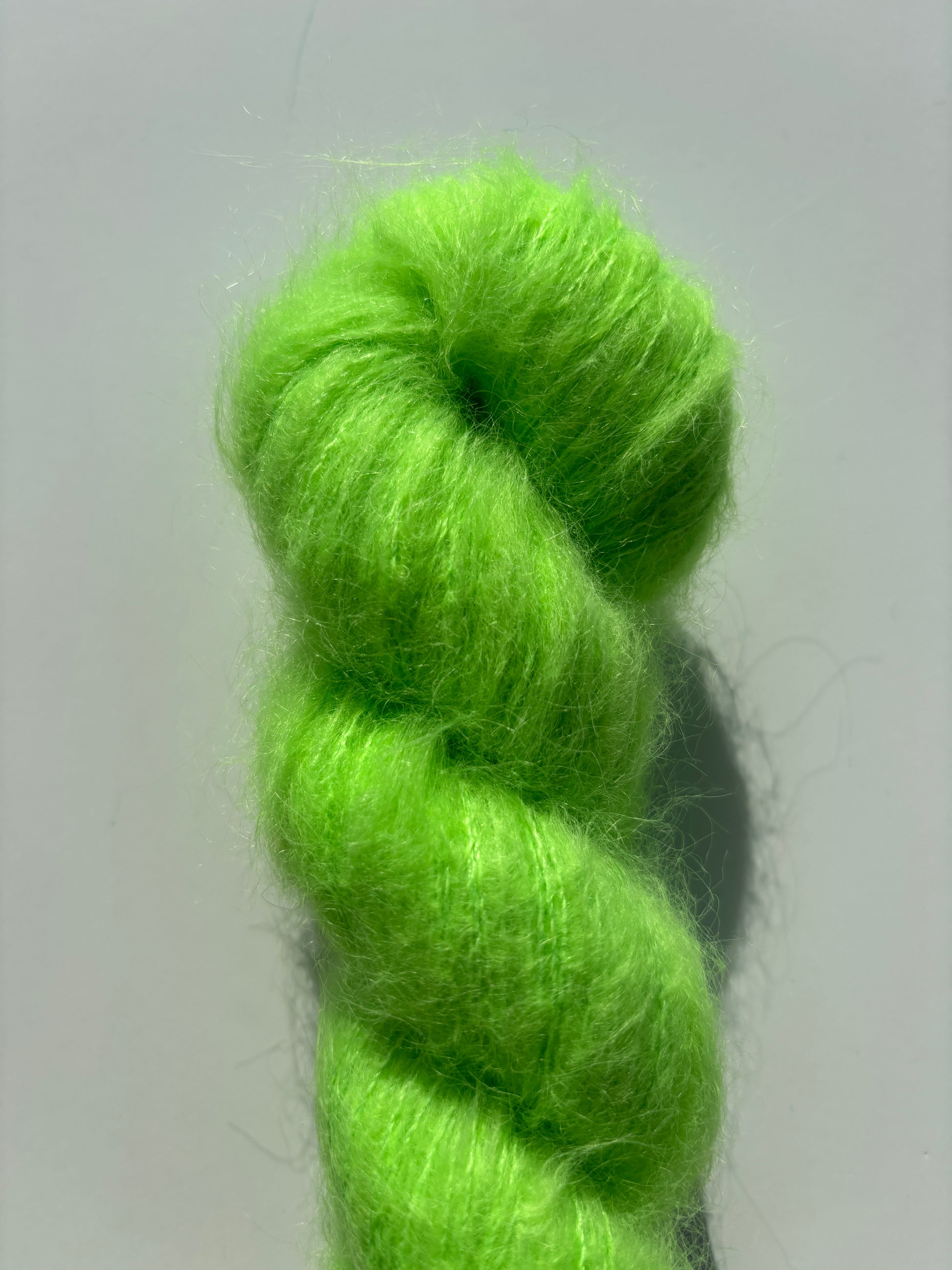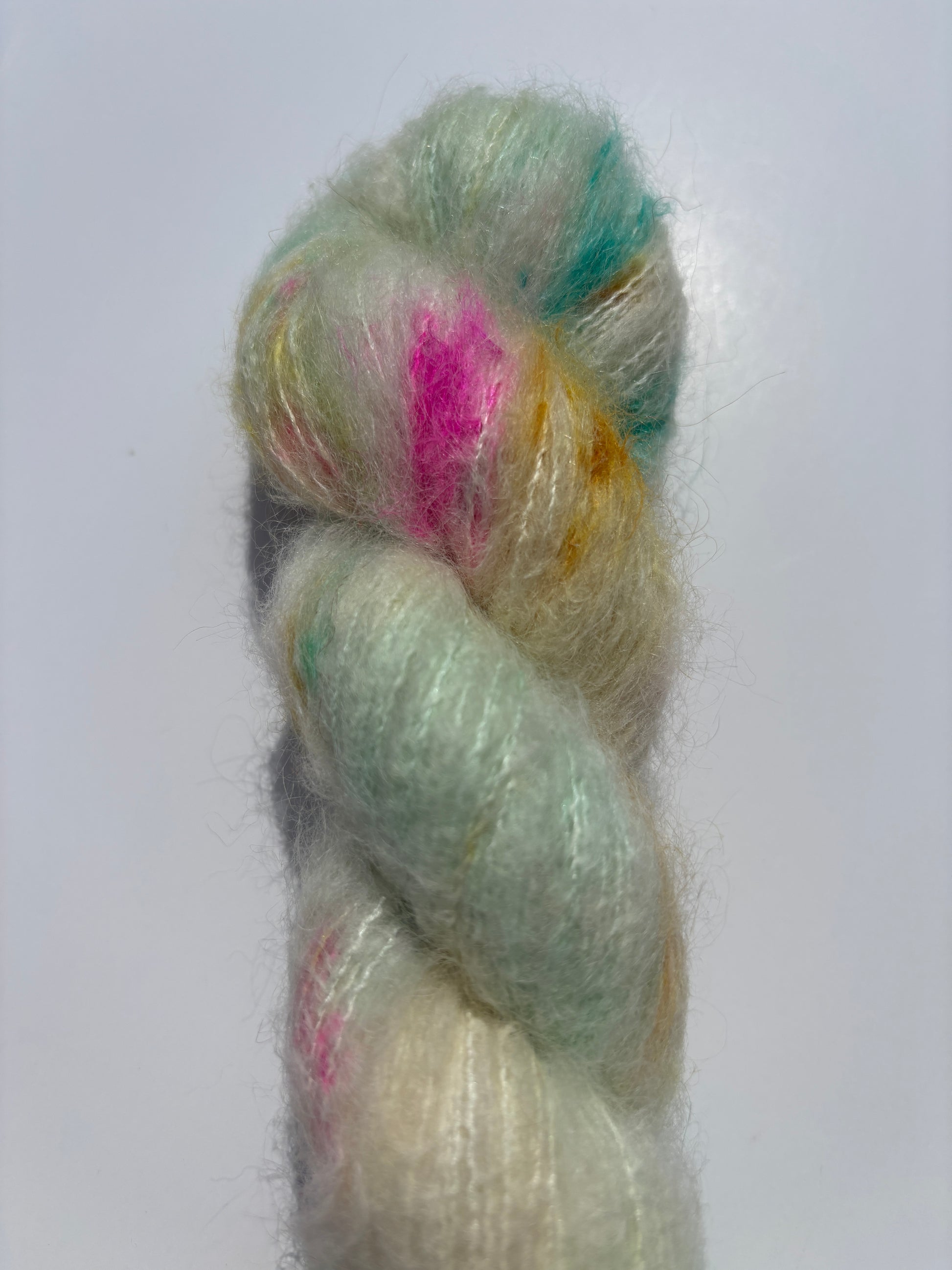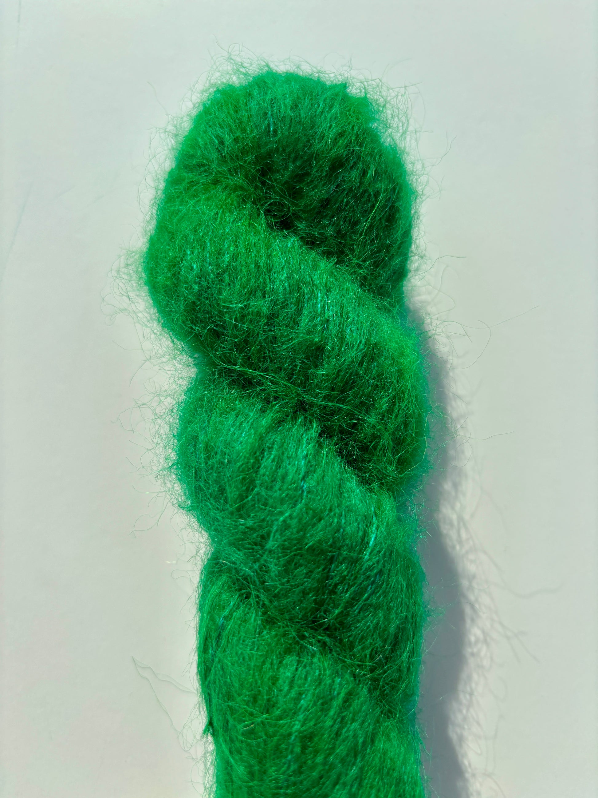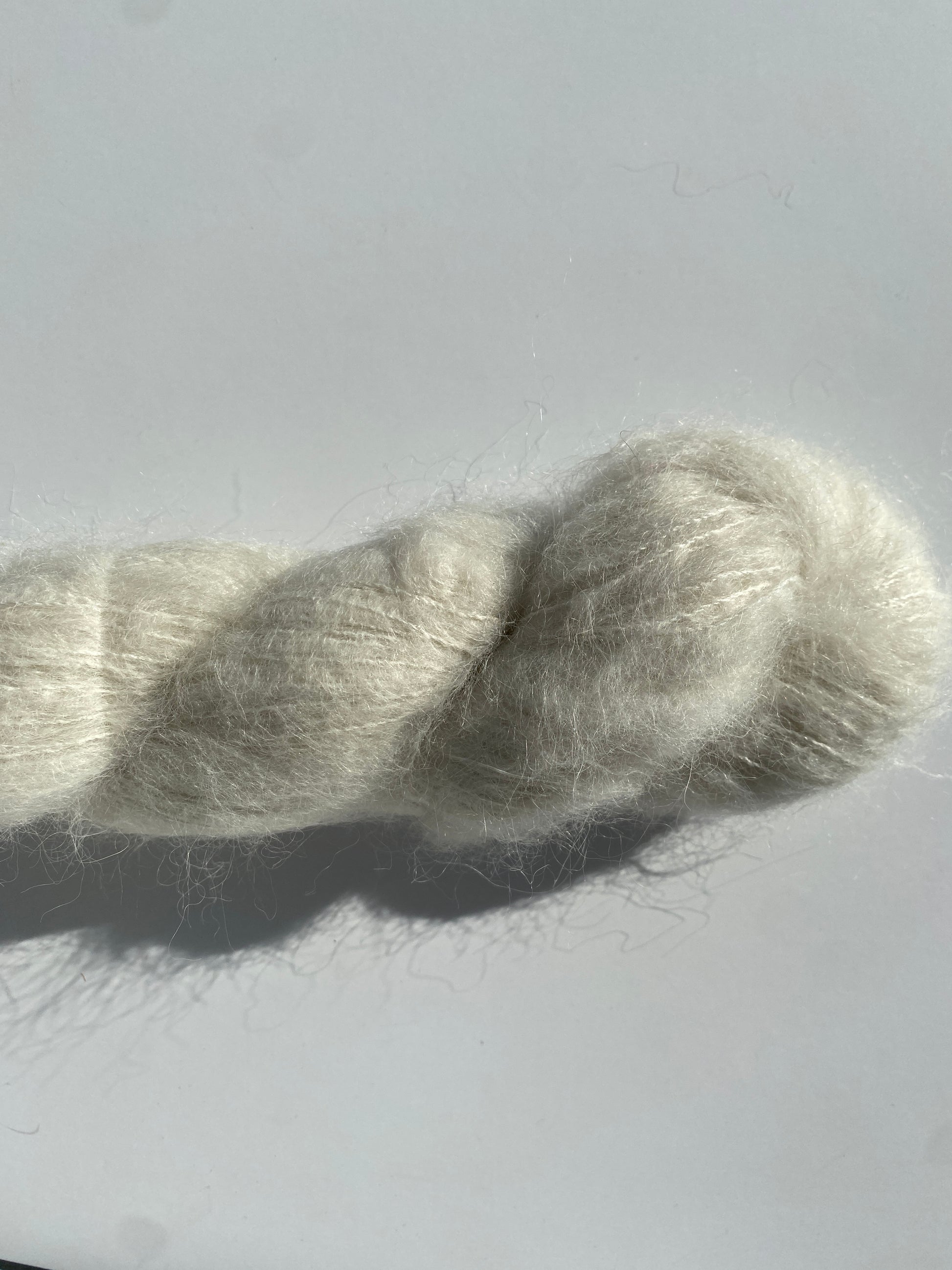 SURI SILK is a decadent, soft, lovely lace-weight yarn often used in conjunction with another yarn to add a little fluff and softness. Suri Silk is often used as a substitute for mohair, for those who cannot tolerate mohair against their skin.