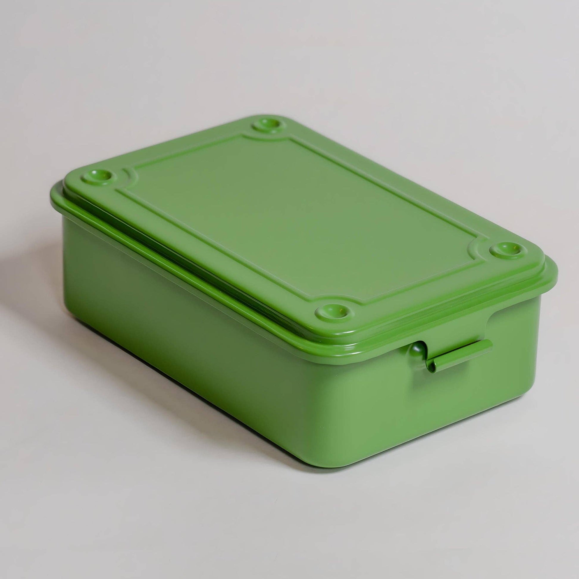 Crafted from a single piece of steel, this sleek storage box features a smooth, flat lid and seamless edges for a refined, safe finish. Its smart negative/positive imprint design allows secure stacking, making it as practical as it is versatile—perfect for organizing art supplies, cosmetics, teas, travel documents, and more. Material: Steel Dimensions: 6.06" × 4.13" × 2.04" Made in: Japan